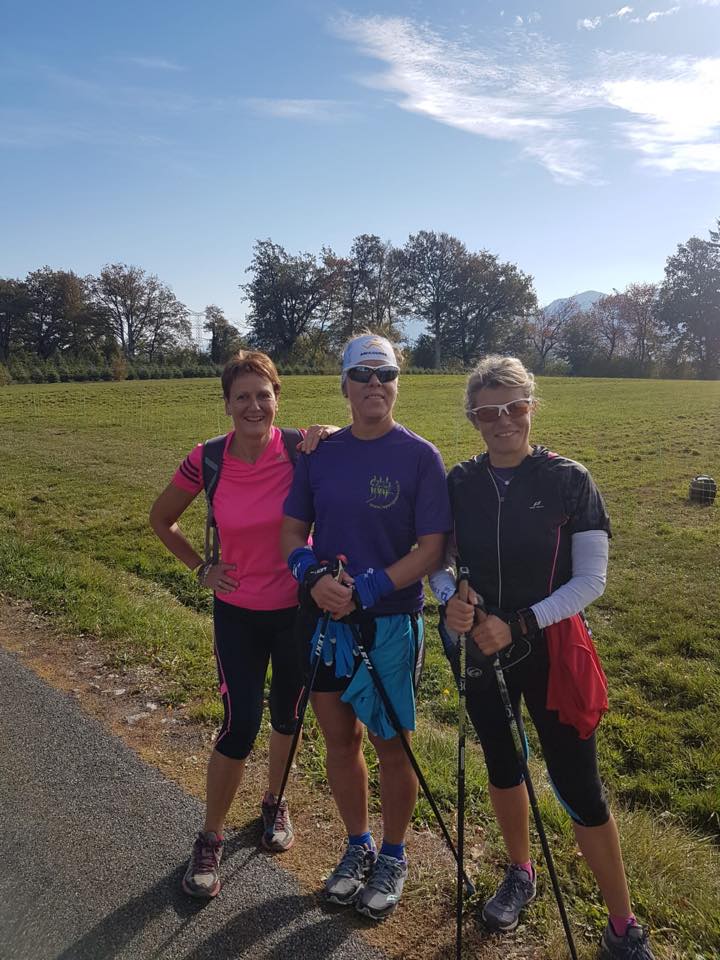 Les marcheurs ont également pu profiter de cette belle journée ensoleillée. Isabelle, Sophie B, Sophie E, Victor et Charlotte ont pu découvrir le même parcours en marche nordique.