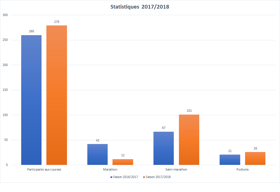 279 amicoursiens ont participé à 34 courses dont 12 en trail- 12 Marathons et 101 semi-marathons, avec un total de 26 podiums.