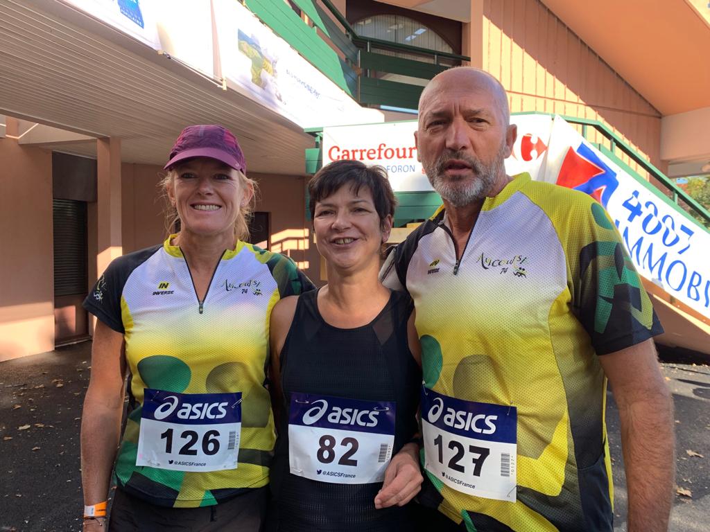 Sophie B., Christine L. et Jean-Marc étaient au départ de la 36 ème Grimpée du Pays Rochois qui propose une marche et une course, le parcours entraîne les coureurs dans une dénivelée de 950 mètres sur les 10 kilomètres séparant La Roche sur Foron de l’alpage de Balme pour une arrivée dans la bonne humeur, suivie d’un buffet réparateur. Christine 4/M1F en 1h20’25, Sophie 6/M2Fen 1h31’11 et Jean-Marc 17/M2M en 1h30’02. Bravos à eux !!!