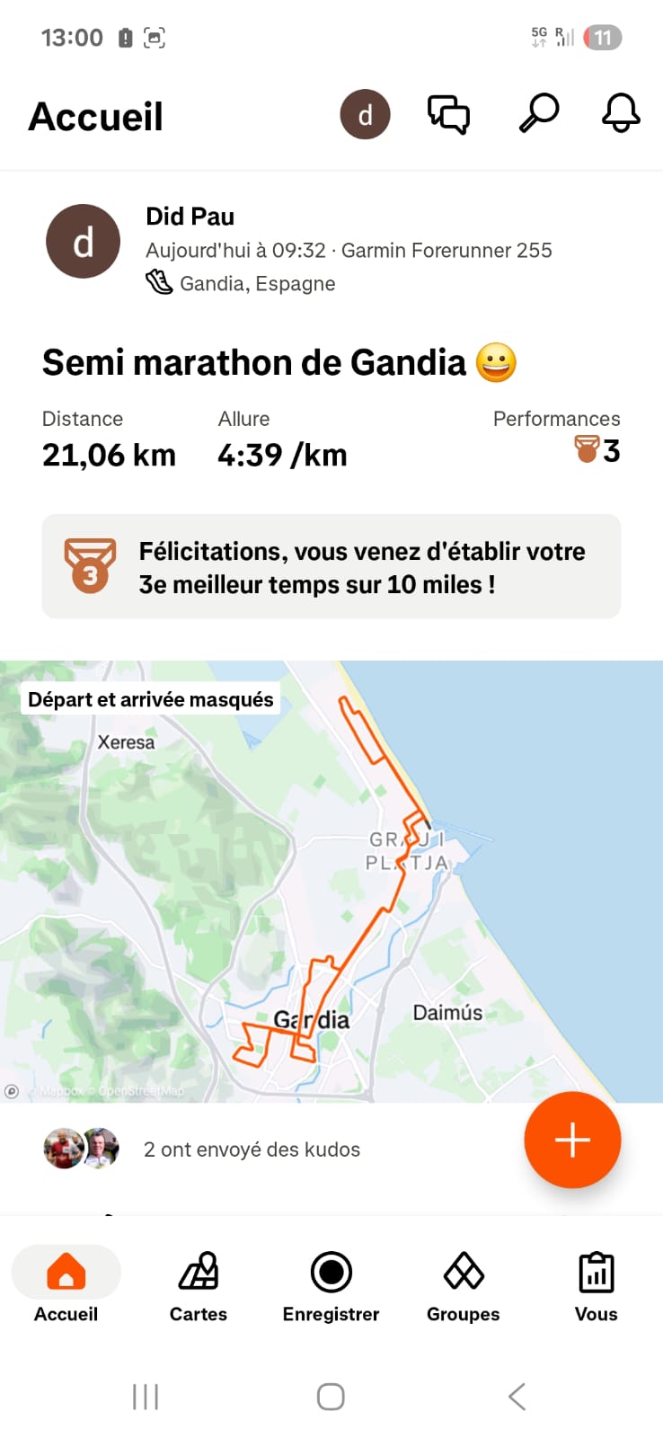Après avoir couru ensemble la Run’air, nos compères Didier et Bernard ont fait le déplacement en Espagne ce dimanche 9 novembre pour participer au semi-marathon de Gandia.